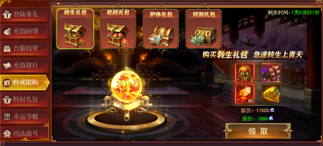活动期间不同特权等级可以购买不同礼包,限时超低折扣,超值大放送。