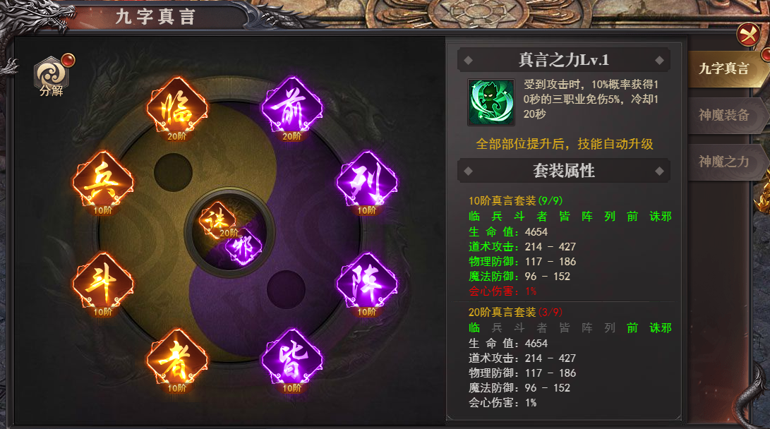 3) 加成:神魔阶级对真言装备有百分比加成,神魔阶级越高,真言装备加成越高!