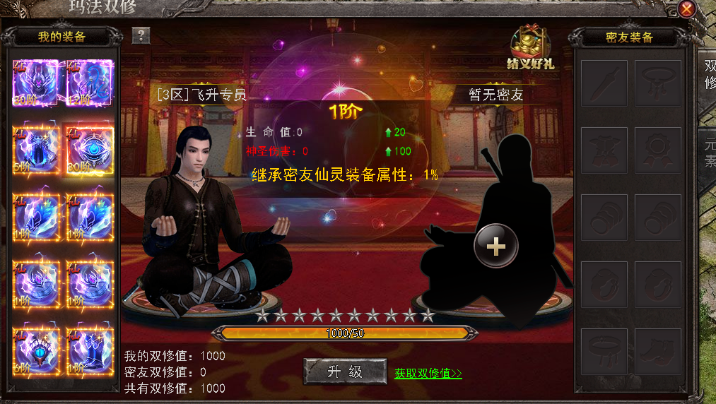 4、双修等级可继承伙伴仙灵装备属性,双修阶数越高,继承越高,最大继承110%