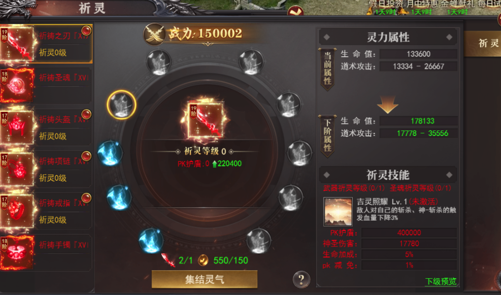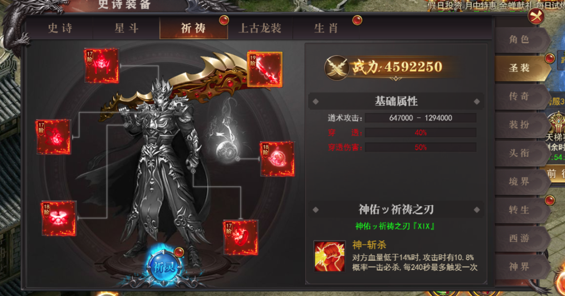 1.开启条件:开服时间达到180且穿戴祈祷装备达到18阶
