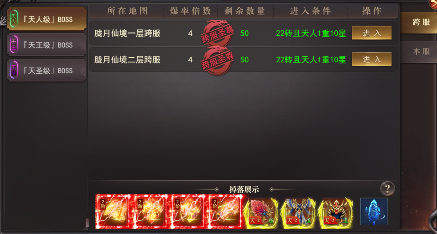开启条件:开服165天22转天人1重10星开启