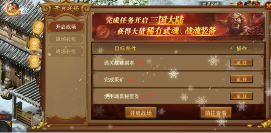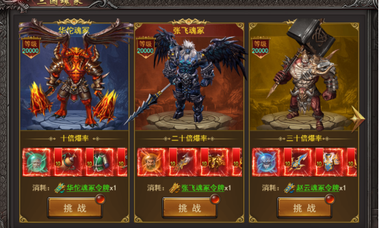 (3).战魂玩法--三国魂冢:产出神将将魂,战魂装备,需要消耗对应神将令牌才可进入,令牌可通过三国战场、限时活动等方式获取,注意:挑战失败或退出不返还消耗道具