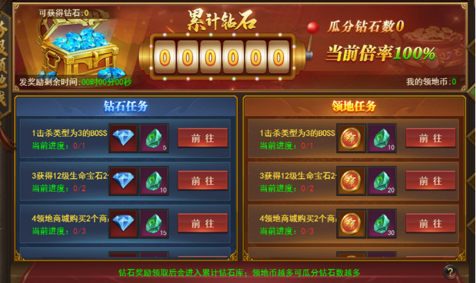 e. 每次领地活动结束后,会清空钻石奖池和个人领地币;