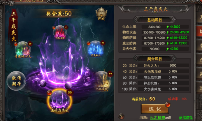 a. 消耗火之精魄对异火进行炼化,炼化成功会增加异火的契合度,契合度达到对应条件可解锁超强属性词条;