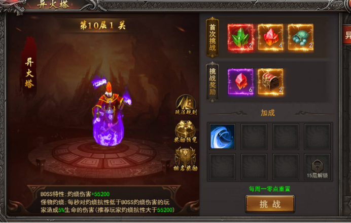 a. 异火塔挑战需要在30秒内击杀boss,击杀后可进入下一层;