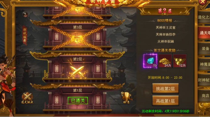3. 新增玩法--封神争霸--通天塔: