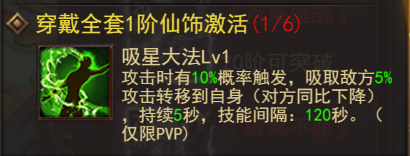 仙饰技能:吸星大法---攻击时有概率触发,吸取敌方攻击百分比转移到自身(对方同比下降)