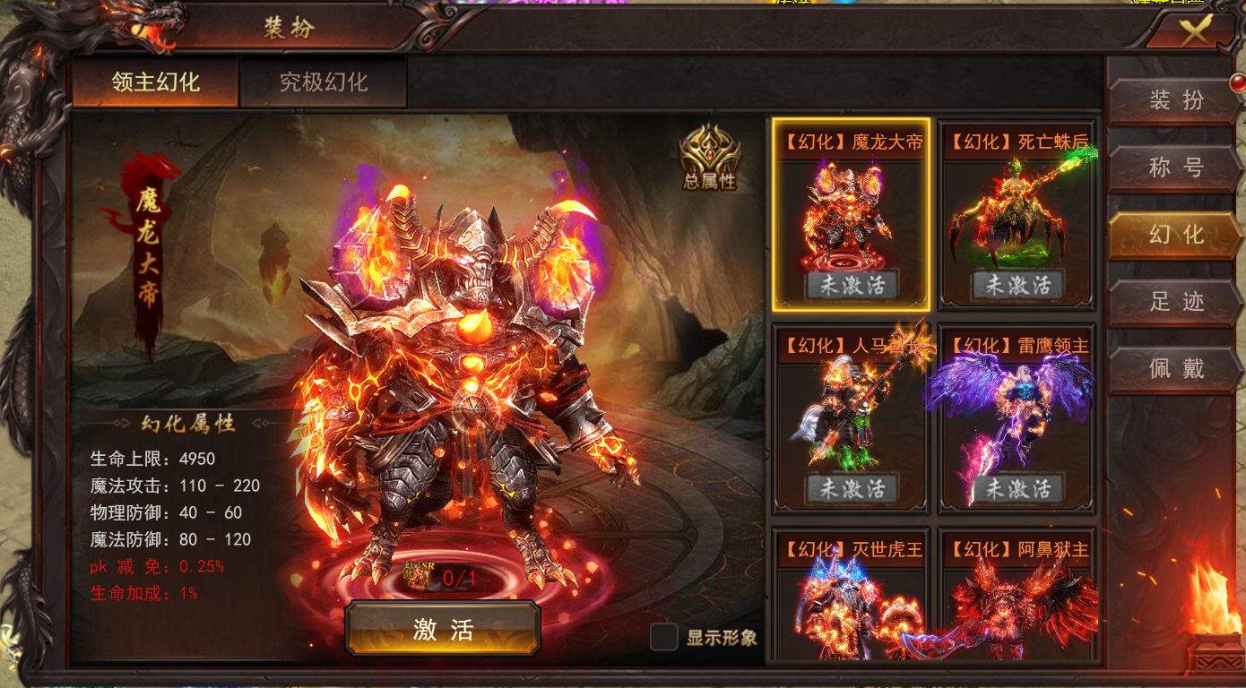 2、新增装扮领主幻化、究极幻化。开服90天开启,激活后装扮即可变身成怪物形象