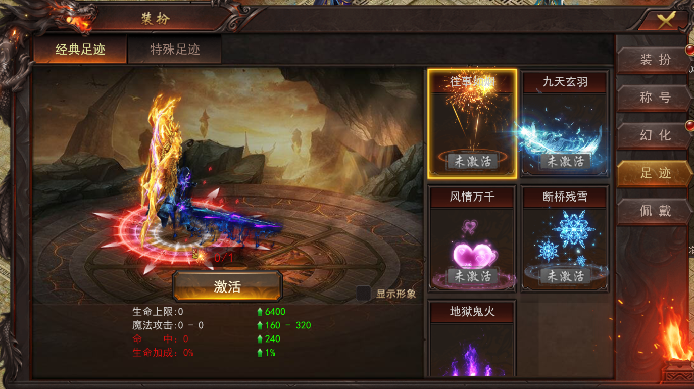 1、新增装扮-足迹幻化。开服90天开启,激活后可装扮,角色行走可获得特效