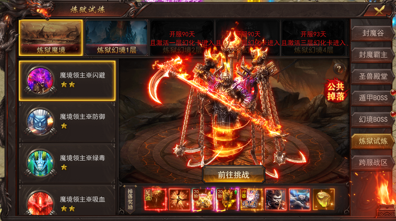 3、新增地图炼狱试炼,开服90天开启