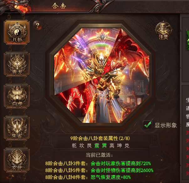 技能-合击界面查看,四圣兽超级八卦!强化合击!