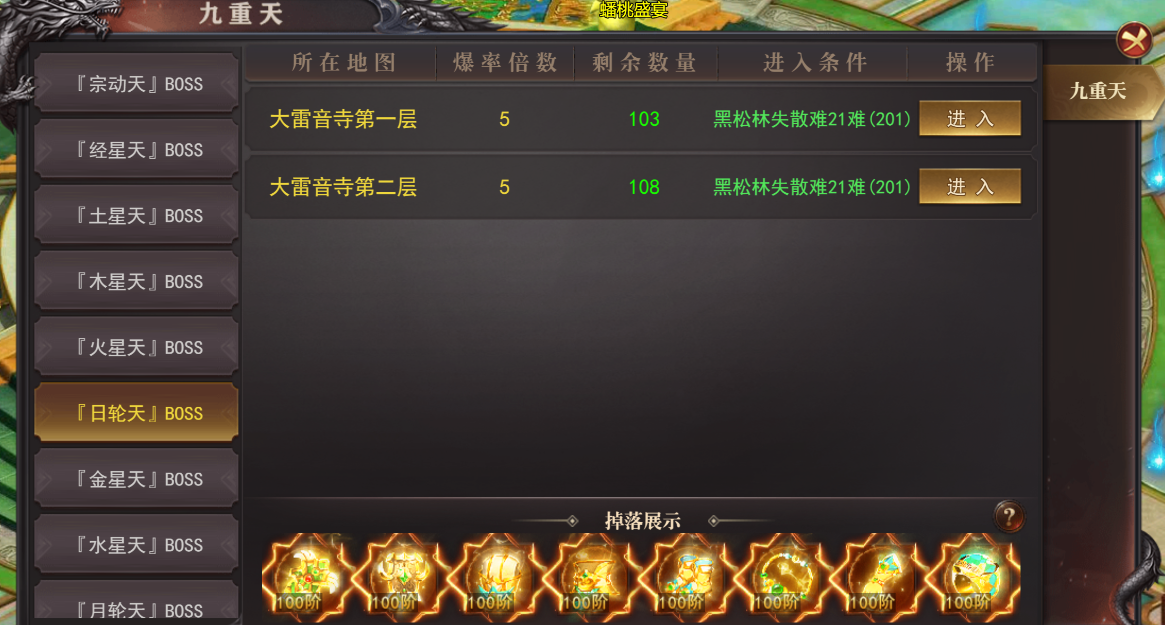 (2)需分别达到指定劫难等级及灵器穿戴等级才可进入
