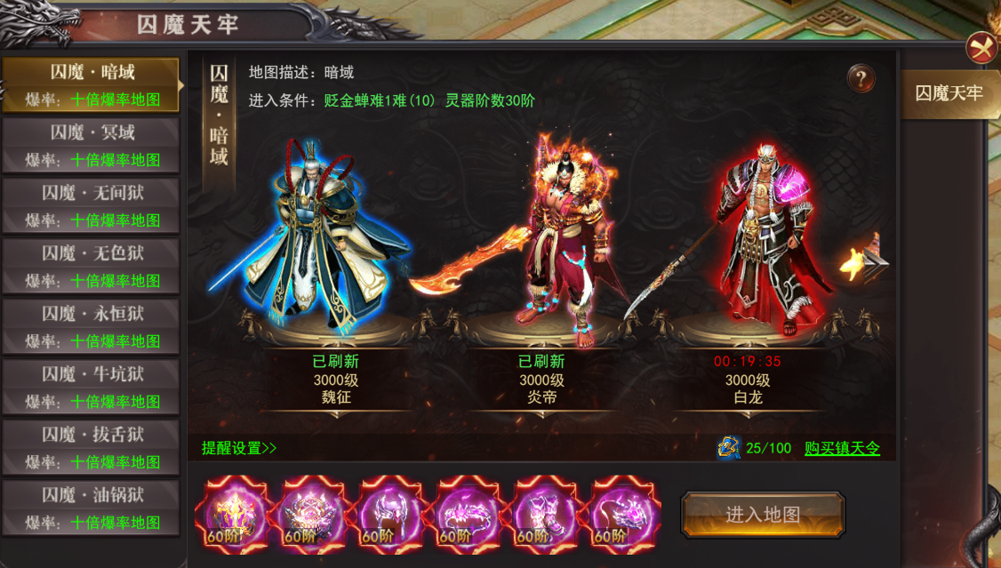 (3)击杀天牢怪物会扣除一定镇天令,镇天令不足时无法对B0SS造成伤害