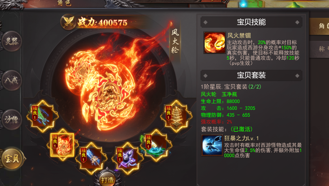 2.宝贝套装:芭蕉扇、风火轮、三尖两刃戟、紫金葫芦、玉净瓶、玄黄塔