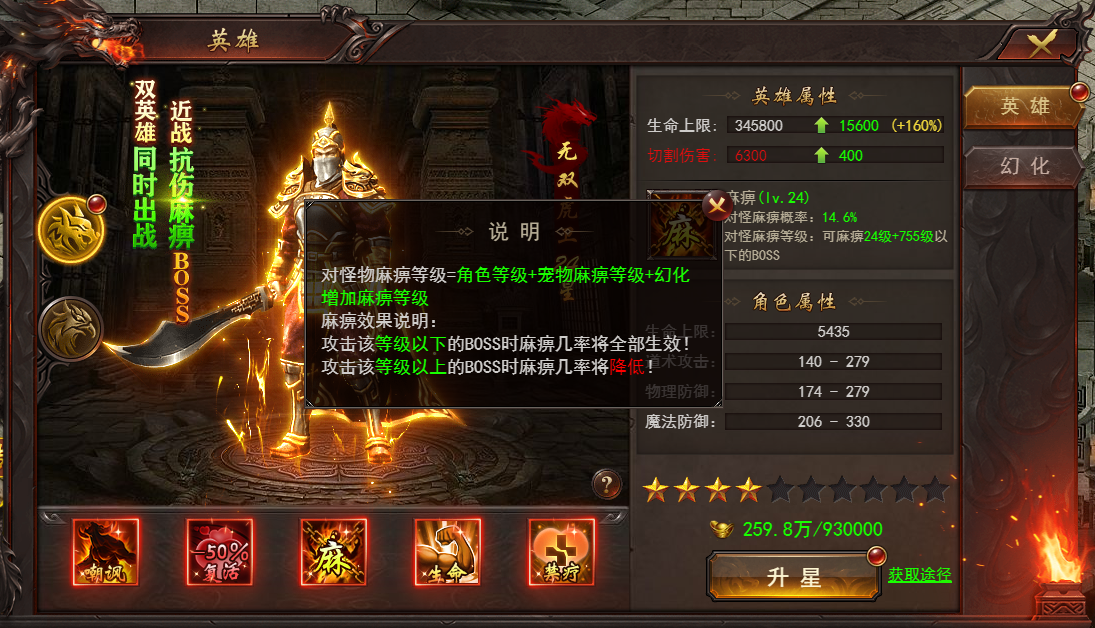 游戏内角色达到110级完成对应的主线任务可以激活英雄系统,全名赞助98元可以获得鹰卫激活卡,双英雄同时出战,近战抗伤麻痹boss,远程输出爆炸伤害。对怪麻痹等级=角色麻痹等级+宠物麻痹等级+幻化增加麻痹等级。