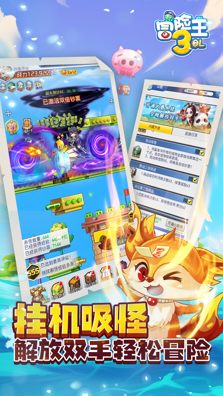 游戏介绍: 《冒险王3OL》是冒险王手游系列的又一新品,传承了冒险王系列手游的经典玩法和美术风格。神级还原了挂机吸怪的经典玩法,Q萌Boss满身神装等你爆,还有数千种时尚搭配免费体验。神秘的 未知大陆,Q萌的冒险世界,快来和小伙伴们一起找回最初的快乐吧! 《冒险王3OL》是冒险王手游系列的又一新品,传承了冒险王系列手游的经典玩法和美术风格。神级还原了挂机吸怪的经典玩法,Q萌Boss满身神装等你爆,还有数千种时尚搭配免费体验。神秘的 未知大陆,Q萌的冒险世界,快来和小伙伴们一起找回最初的快乐吧! 开始玩